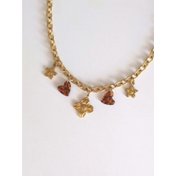 Collier composé de 5 Charms : - Création assemblée à la main - Chaîne : acier inoxydable - Breloques : acier inoxydable, acétate - Longueur de la chaîne : 42 cm + 5cm