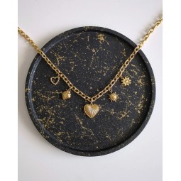Collier composé de 5 Charms : - Création assemblée à la main - Chaîne en acier inoxydable - Breloques en acier inoxydable - Longueur de la chaîne : 40 cm + 5 cm