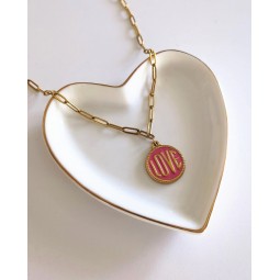 Collier en acier inoxydable : - Création assemblée à la main - Longueur de la chaîne : 42 cm + 5 cm Choisissez votre coloris dans la barre déroulante.