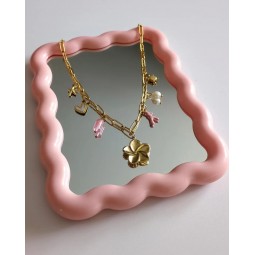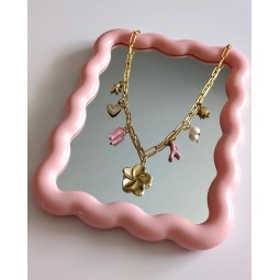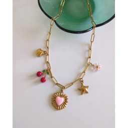 Collier composé de 5 Charms : - Création assemblée à la main - Chaine : acier inoxydable - Breloques : acier inoxydable, résine et perles - Longueur de la chaîne : 42 cm + 5cm