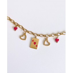 Collier avec fermoir cœur à visser composé de 3 Charms : - Création assemblée à la main - Chaine : acier inoxydable - Breloques : acier inoxydable et perles - Longueur de la chaîne : 42 cm + 5cm