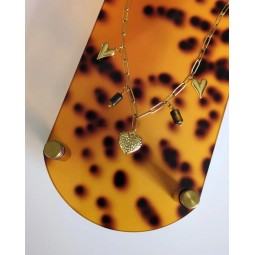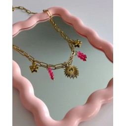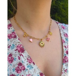 Collier composé de 5 Charms : - Création assemblée à la main - Chaine : acier inoxydable - Breloques : acier inoxydable et résine - Longueur de la chaîne : 40 cm + 5 cm