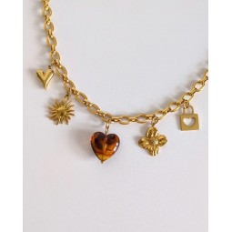 Collier composé de 5 Charms : - Création assemblée à la main - Chaine : acier inoxydable - Breloques : acier inoxydable et résine - Longueur de la chaîne : 40 cm + 5cm