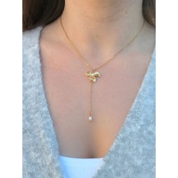 Collier long composé de deux Charms : - Création assemblée à la main - Chaîne : acier inoxydable - Breloques : acier inoxydable et perle - Longueur de la chaîne : 60 cm + 5 cm