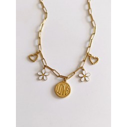 Collier composé de 5 Charms : - Création assemblée à la main - Chaîne en acier inoxydable - Breloques en acier inoxydable - Longueur de la chaîne : 42 cm + 5 cm