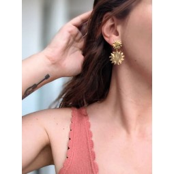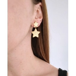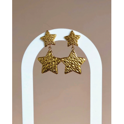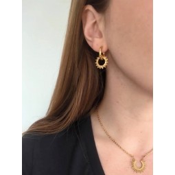 Créoles et soleils martelés en acier inoxydable. Création assemblée à la main. Dimensions créoles : 18 mm.