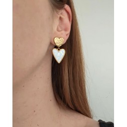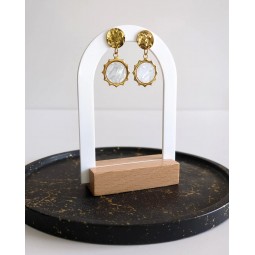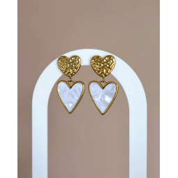 Boucles d'oreilles en acier inoxydable - Création assemblée à la main - Breloques : acier inoxydable et coquille naturelle