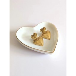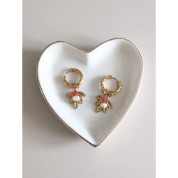 Boucles d'oreilles cœurs en acier inoxydable et résine couleur crème marbré - Création assemblée à la main - Hauteur : 31 mm