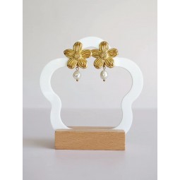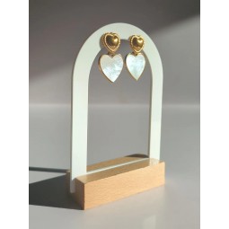 Boucles d'oreilles en acier inoxydable et nacre - Création assemblée à la main - Hauteur : 31 mm