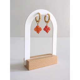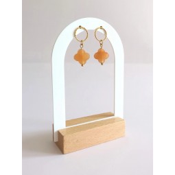 Boucles d'oreilles en acier inoxydable et Aventurine orange : - Création assemblée à la main - Puces cercles évidés effet diamanté et perles trèfles facettées