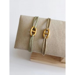 Bracelet cordon maille Marine - Cordon métallisé Mokuba Kaki fil doré ou Bronze fil doré - Maille marine : acier inoxydable - Création assemblée à la main Choisissez votre coloris dans la barre déroulante.