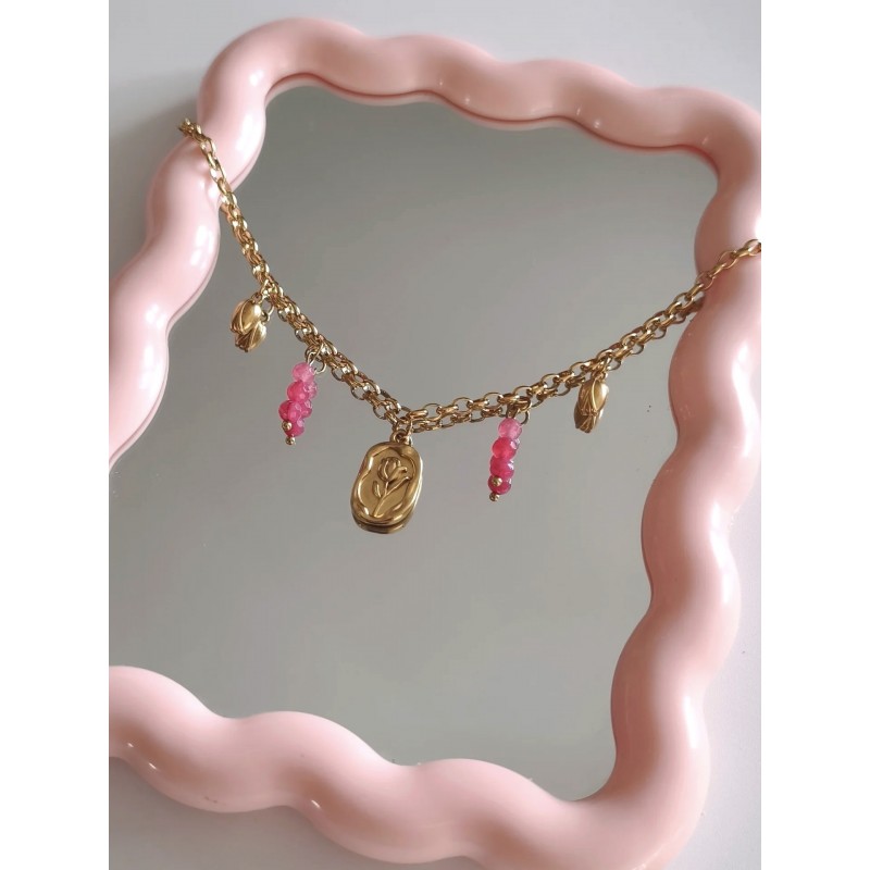 Collier Charms "Pink Tulips"
