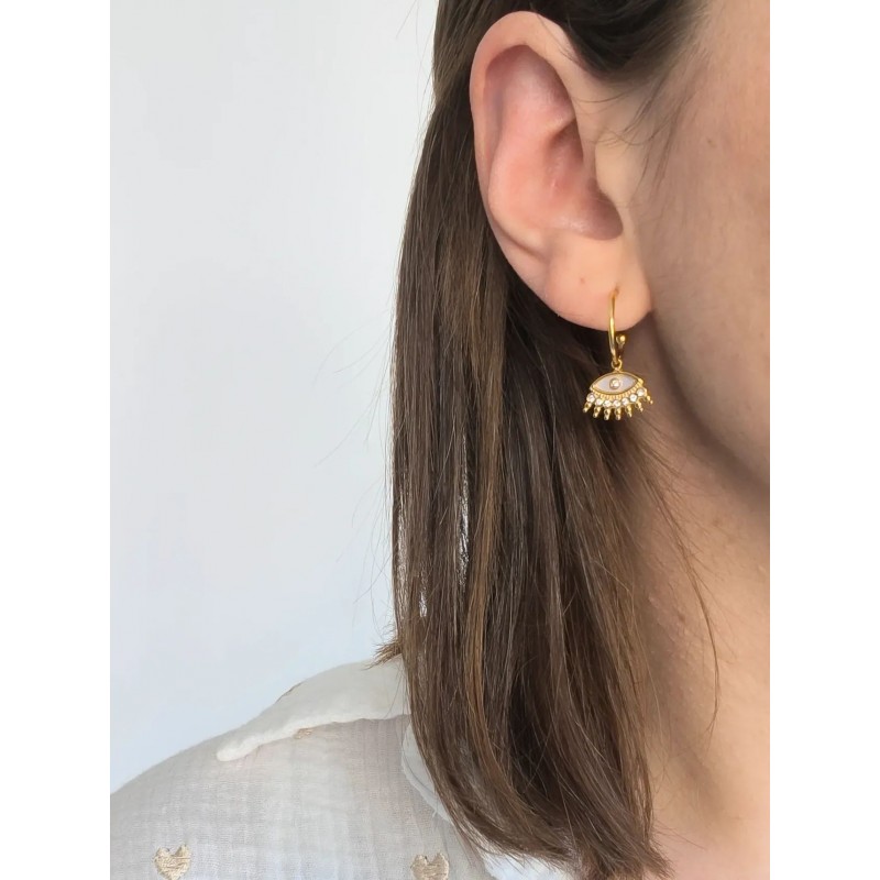 Boucles d'oreilles en acier inoxydable, nacre et oxydes de zirconium